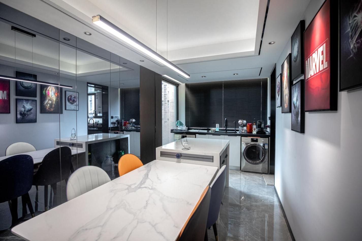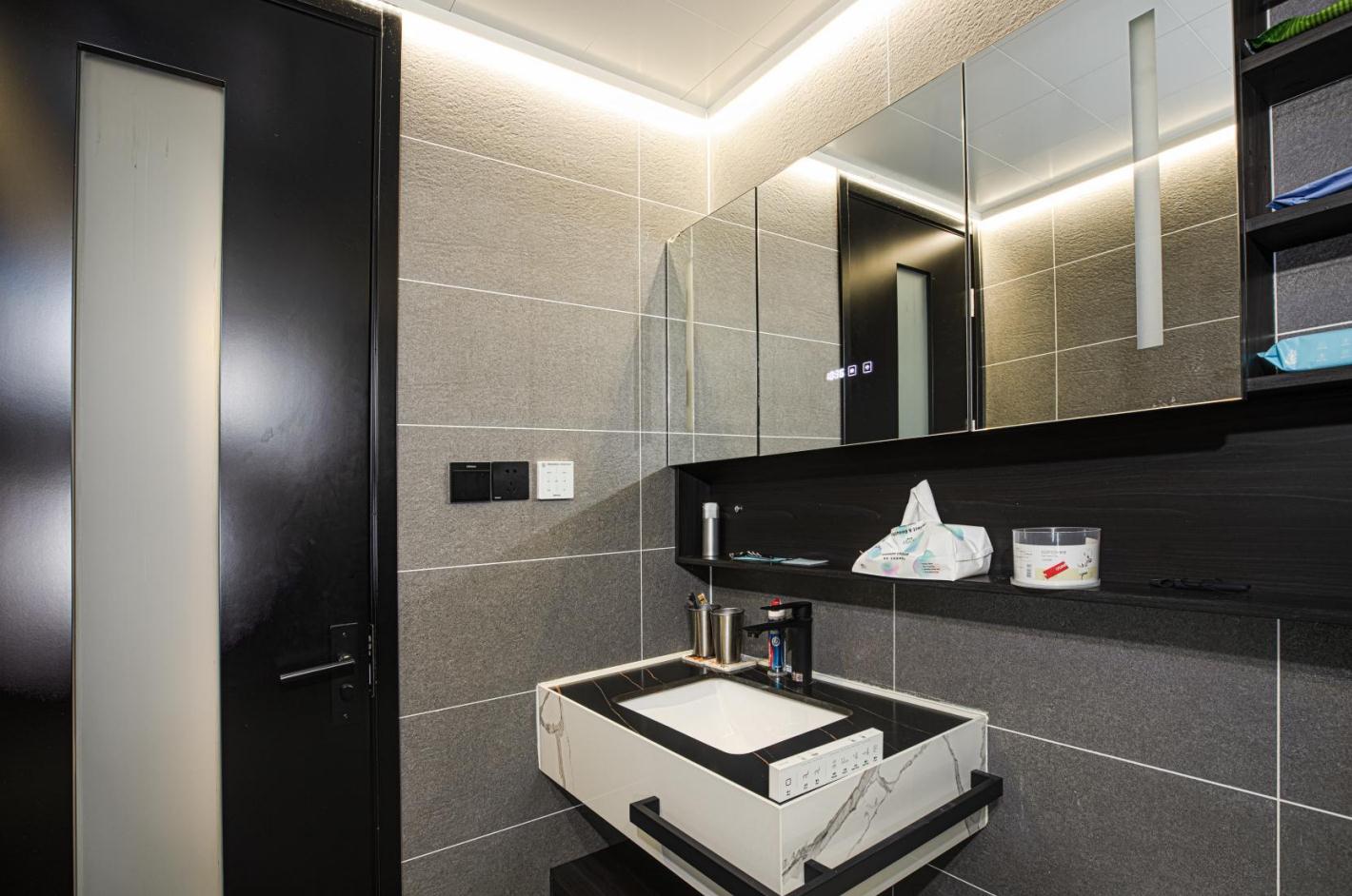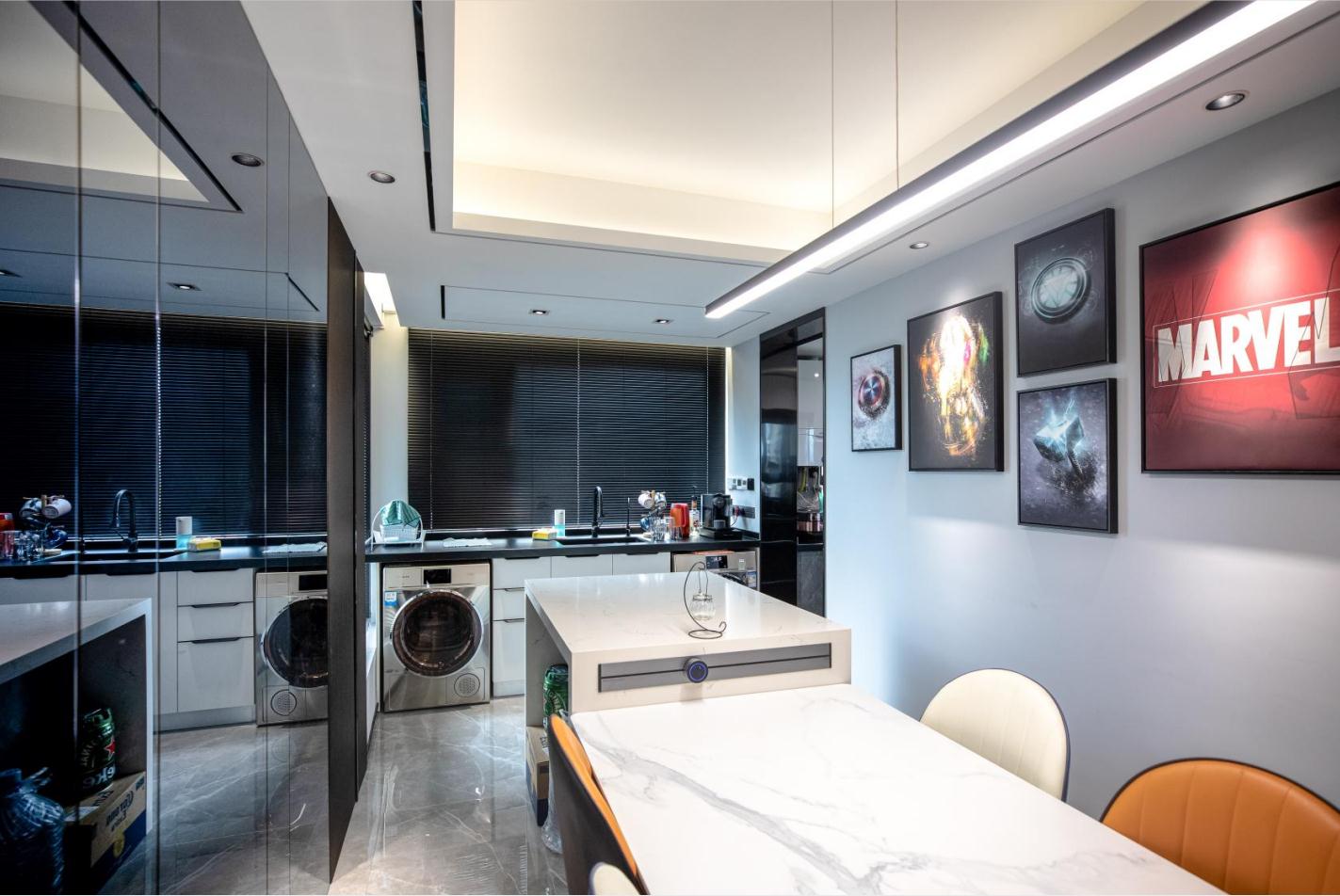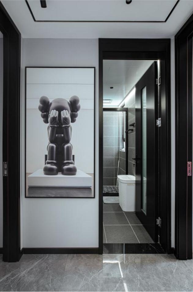 將“簡而不俗”、“簡奢有度”的設(shè)計理念融入空間、融入生活。 將金屬元素與黑白灰的主色調(diào)相互融合、和諧共存,剛?cè)岵纬煽臻g獨有的氣質(zhì)