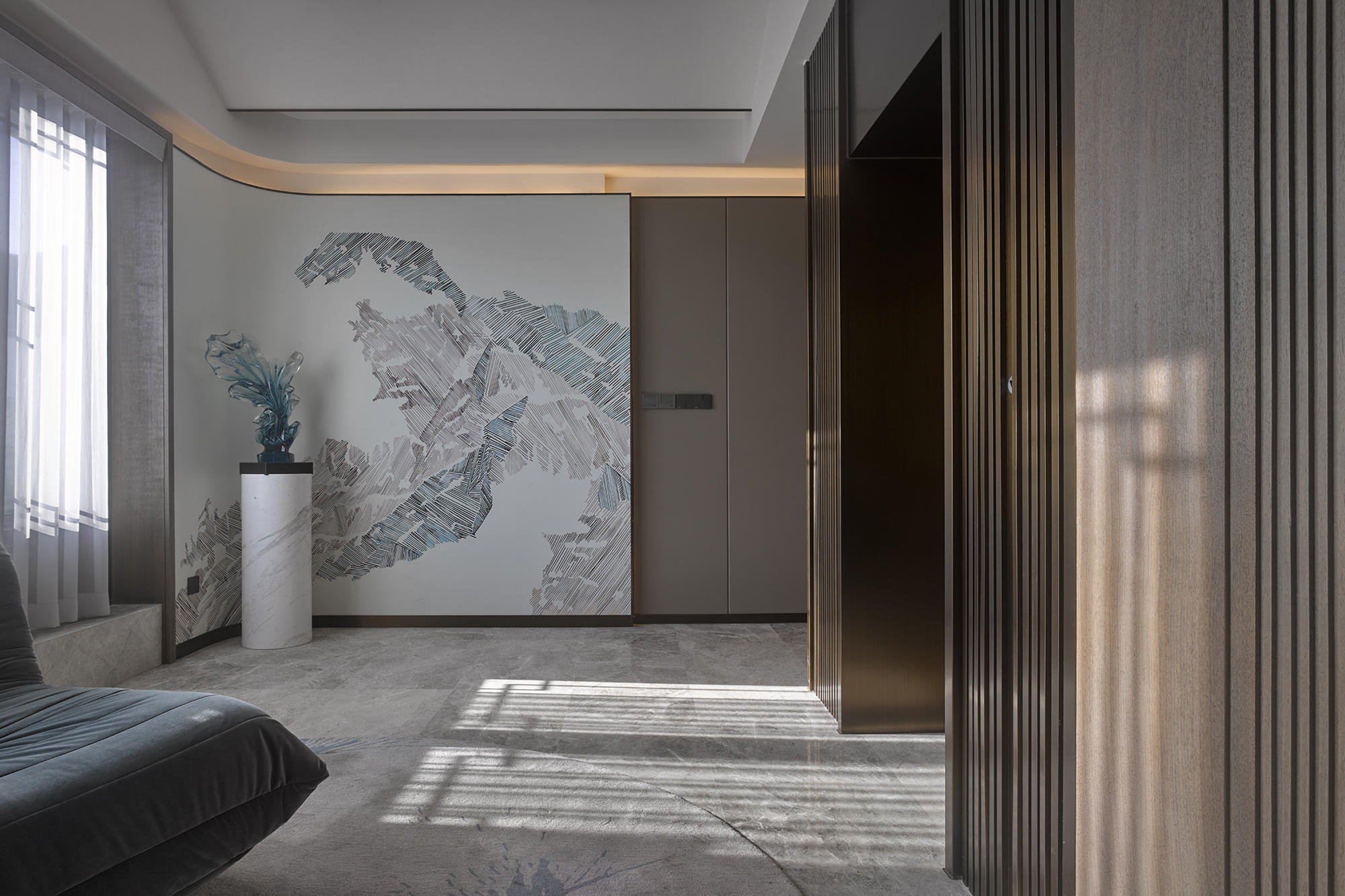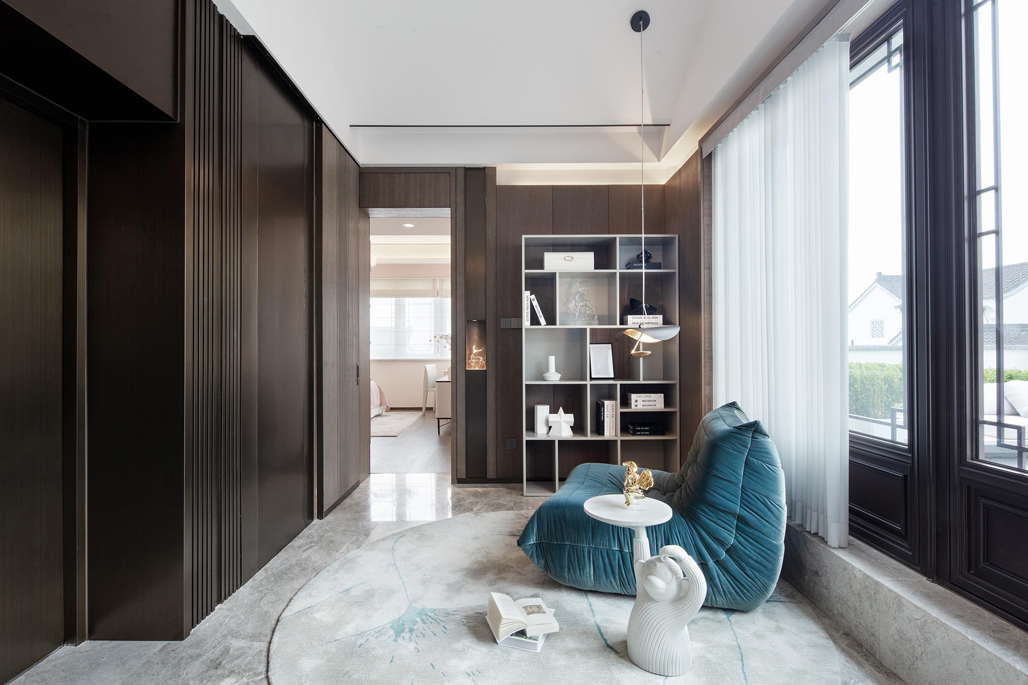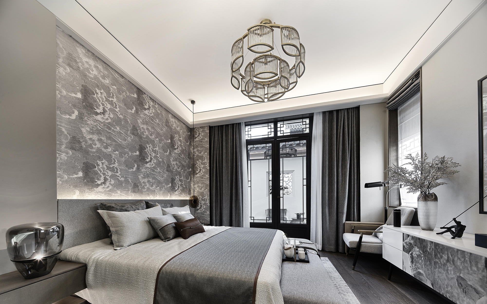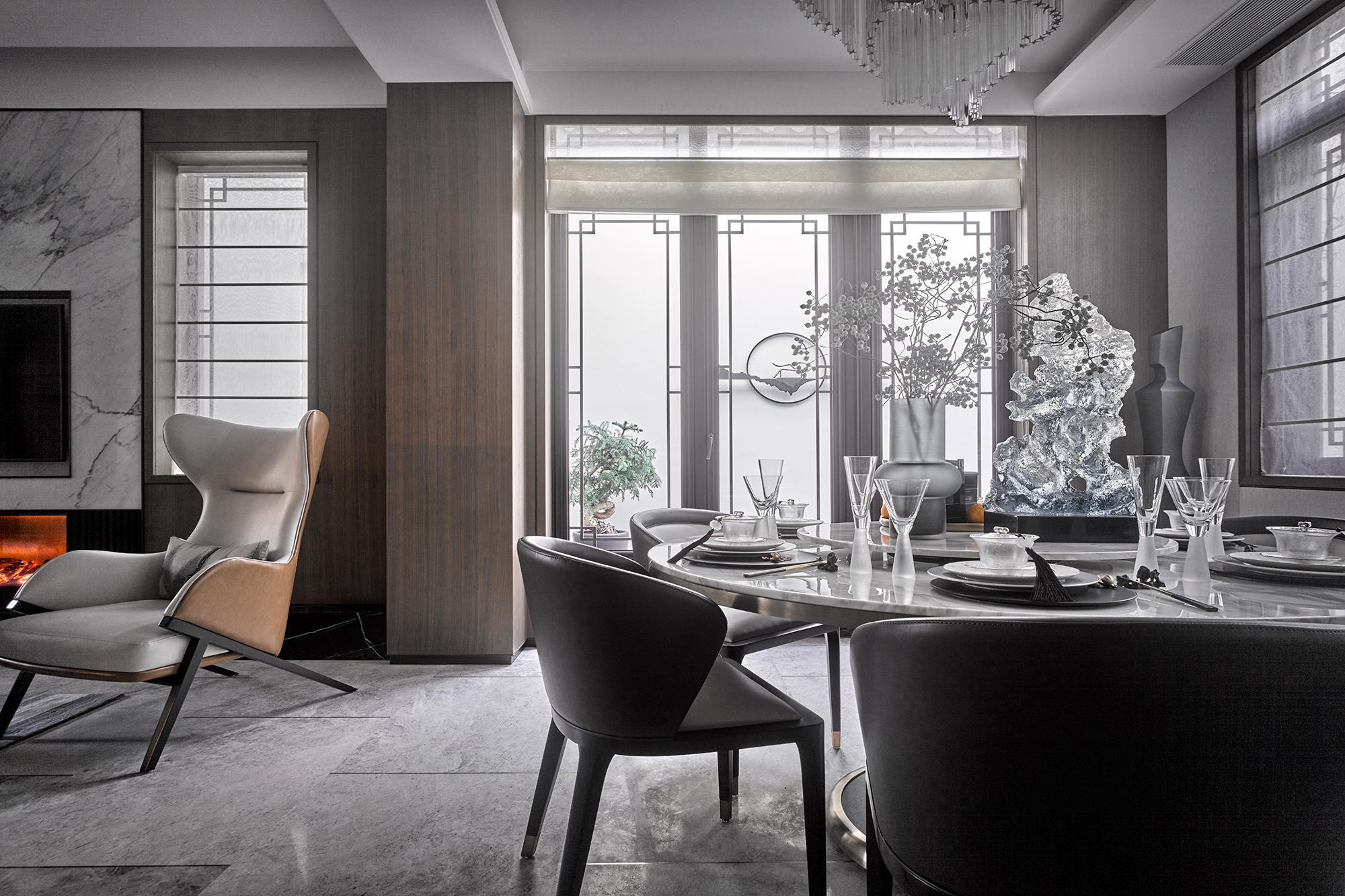 眺望富春江,背倚黃公望國(guó)家森林公園,綠城·富春玫瑰園以賦予有無(wú)相生、道法自然的東方哲思,匠心創(chuàng)作出遵循中式美學(xué)內(nèi)涵的庭院居所,隱逸生活映現(xiàn)于世。