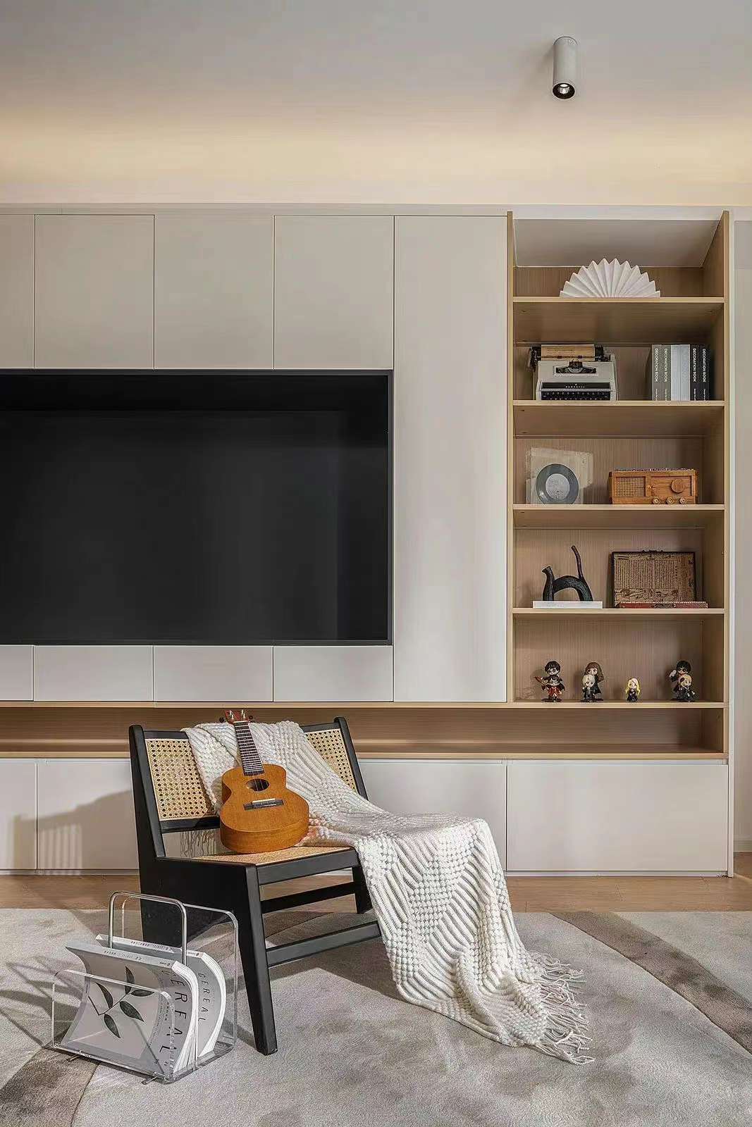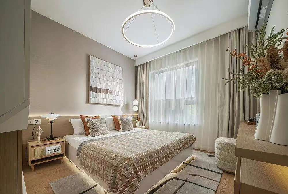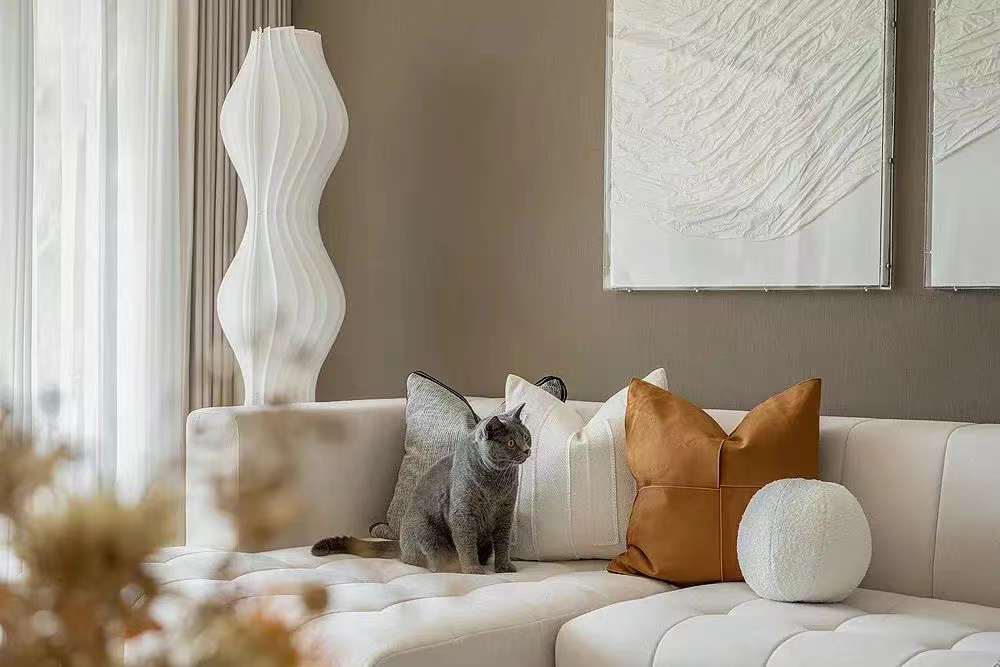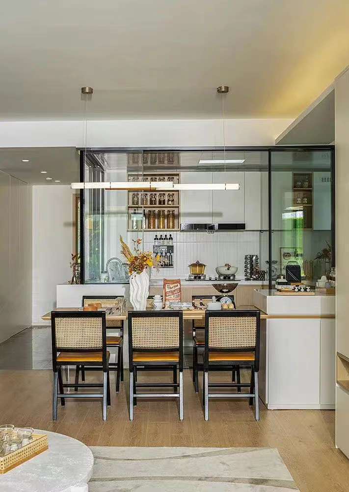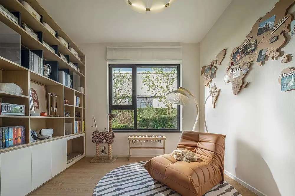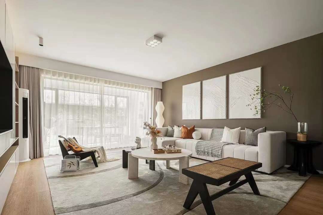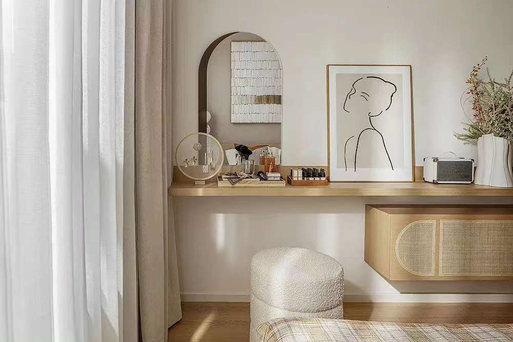 空間使用黑白線條勾勒出家的輪廓,大地色系搭配藤編家具,給空間增添了一抹古樸的自然。舒適的布藝給予家的舒適與溫暖,精致的藝術(shù)品在空間體現(xiàn)出主人的生活品味,營造出業(yè)主注重生活品質(zhì),對(duì)生活與美感的追求。