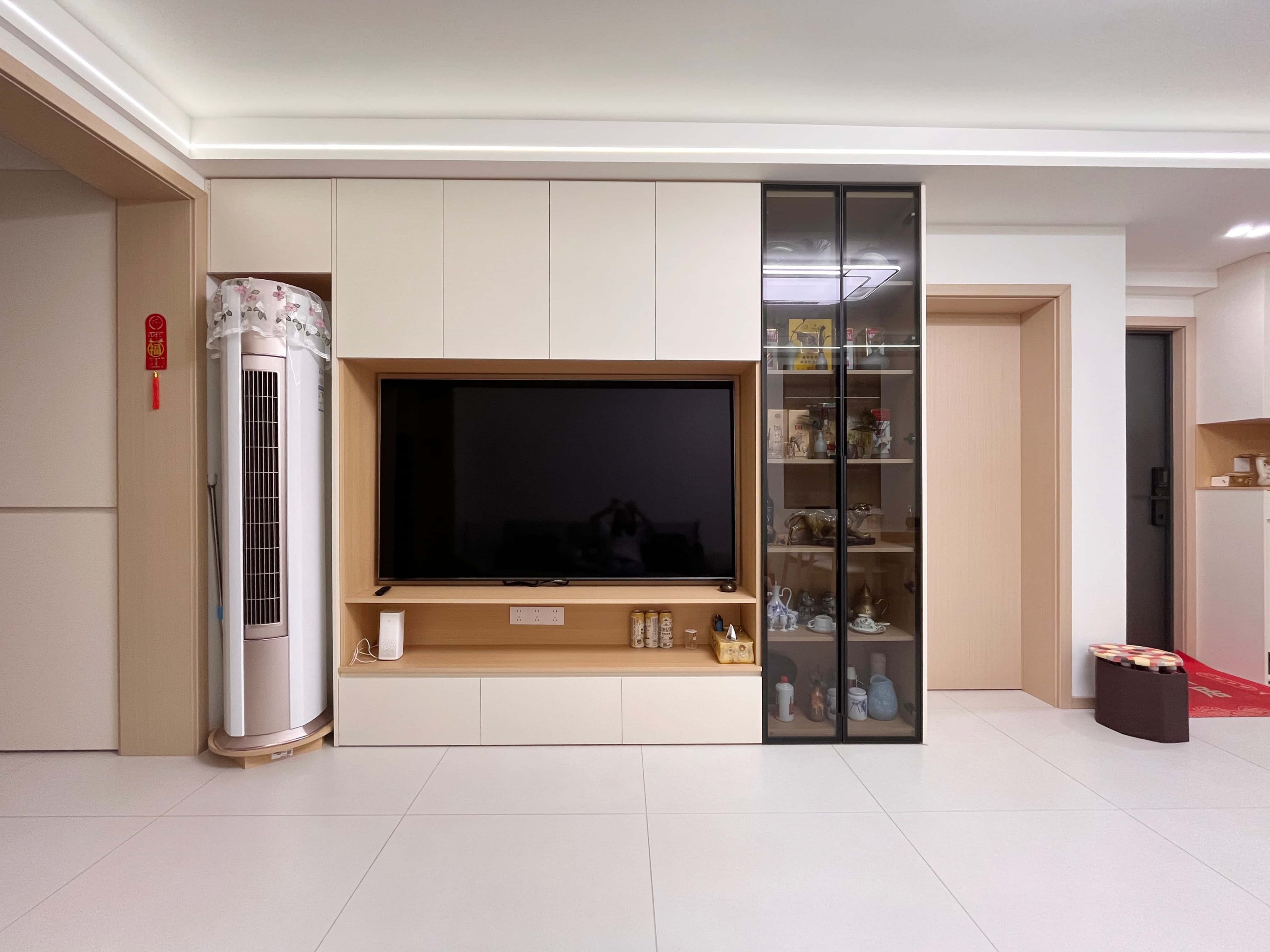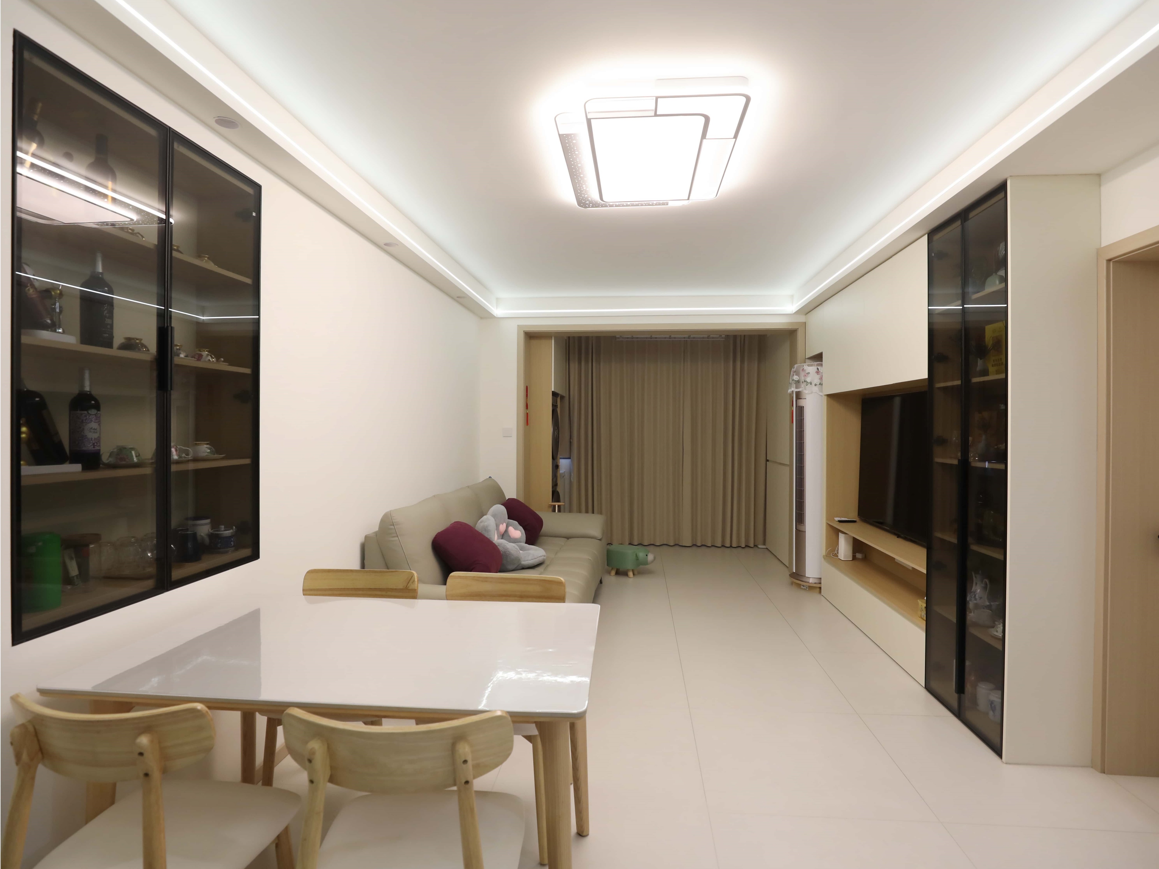 老房新生,不僅是風格的轉變,更是對居住者生活方式的深度回應。洪先生一家三口各有所愛:爸爸收藏紅酒,媽媽鐘情茶具,兒子熱愛二次元,一家人在這里住了二十余年,屋內布局早已不能滿足他們的日常生活和情感需求。面對琳瑯滿目的藏品與日常雜物,設計師謝倩楠以溫馨的原木風為基調,通過動線重組與全屋定制收納系統,打造一個能輕松打理的家